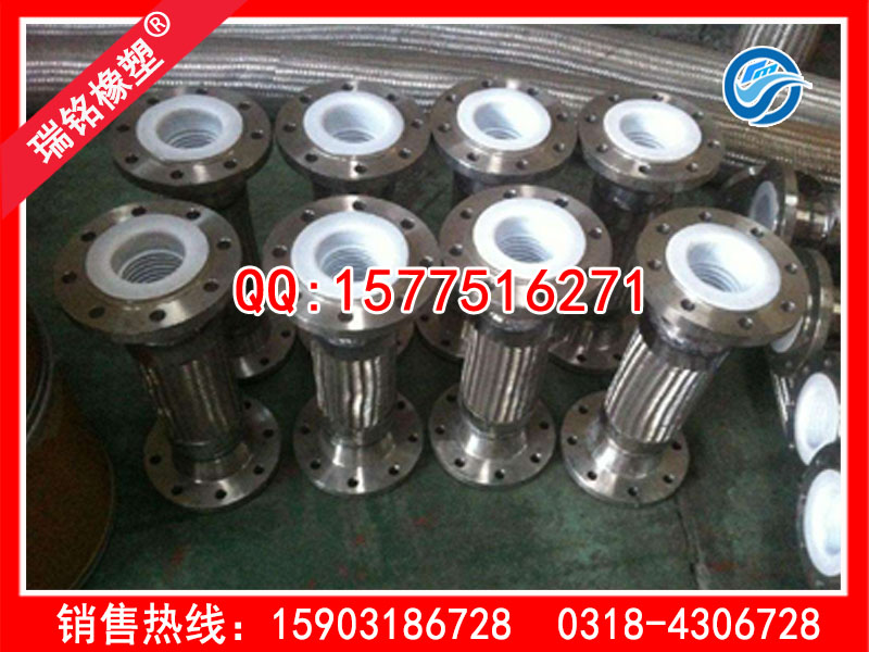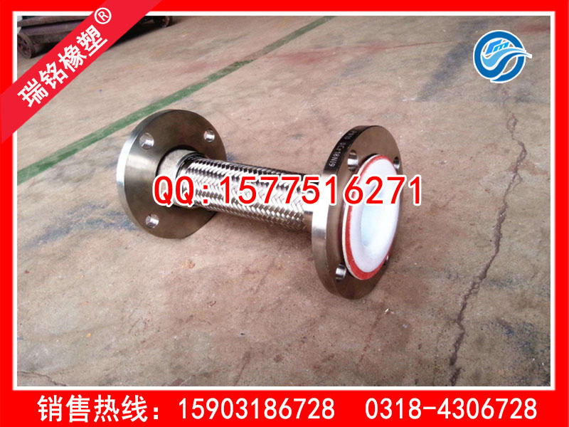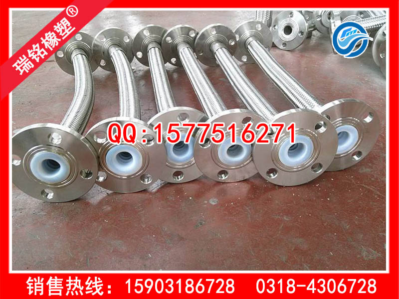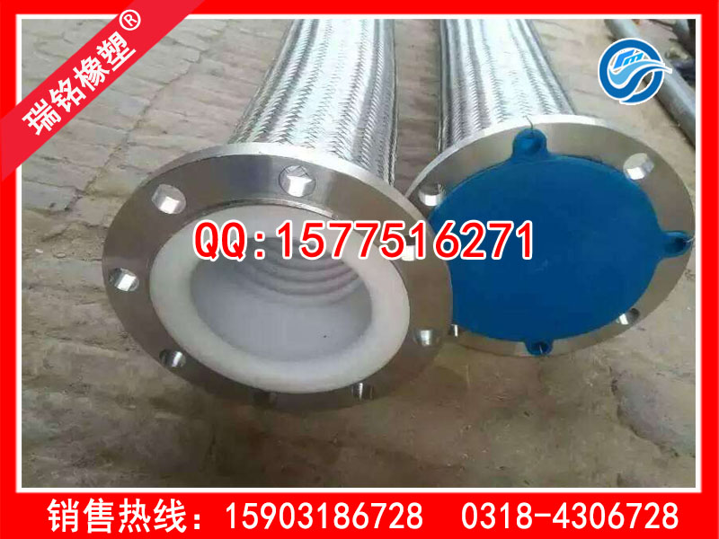 内衬四氟金属软管两端的接头:接头主要包括螺纹连接、法兰连接、快速接头连接。两端法兰密封面全为四氟材质,保证输送安全可靠软管(可负压)。
